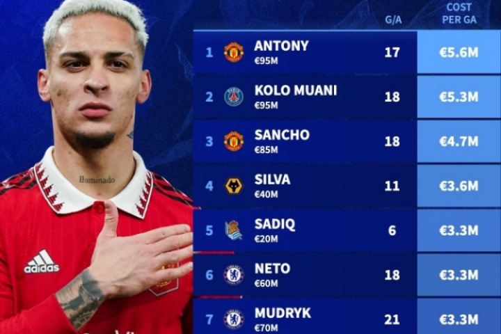 1.安东尼 每球560万欧
