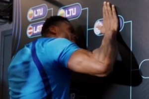 赛后,字母哥哥将希腊男篮贴纸贴在了半决赛位置,同时用力拍打充满激情。