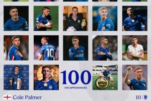 切尔西官方也晒出了海报为帕尔默作为纪念,并配文:“帕尔默在今晚完成了切尔西生涯第100场里程碑。”