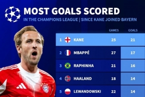 体育资讯9月18日讯 据德国转会市场统计,凯恩加盟拜仁以来出战25场欧冠比赛,打进21球,他是同期欧冠进球最多的球员。