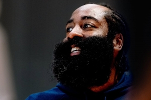 在训练中,哈登笑容满面,深陷阴阳合同风波的小卡现身,多位新援——约翰-科林斯、比尔和大洛以及伤兵博格丹(欧锦赛腿筋撕裂)在列。