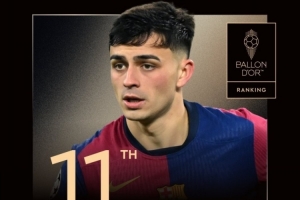 体育资讯9月23日讯 2025年金球奖排名陆续公布,22岁巴萨中场佩德里第11名。