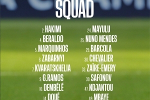 巴黎本场比赛大名单如下: