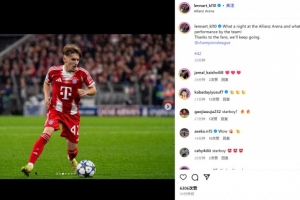 他也在赛后通过社媒晒出自己的比赛照并配文:“在安联球场的精彩一夜,球队的表现也太出色了!感谢球迷们,我们会继续前进。”