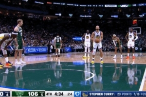 GIF-库里制造犯规两罚一中