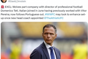 报道称这位意大利总监于今年6月加入球队,此前曾与主帅佩雷拉共事,现在他跟随葡萄牙主帅的脚步离开了俱乐部。狼队可能会在新任主教练确定后进一步调整球队架构。