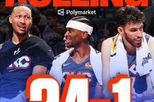 雷霆豪取16连胜创搬迁至俄城以来的最长连胜纪录,24胜1负也追平NBA最佳开季战绩纪录(勇士,2015-16赛季)。